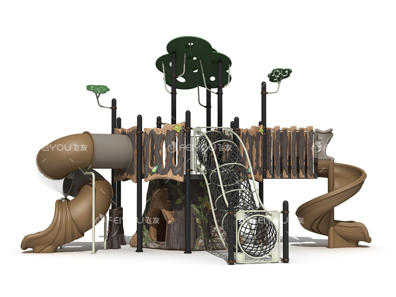 | 產(chǎn)品尺寸 | FY095-01叢林穿越系列組合滑梯 外形尺寸:780*630*490cm 使用年齡段:3-12歲 |